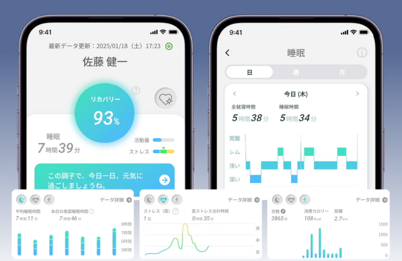 | 睡眠スコア | 睡眠の質(レム/ノンレム)、時間、心拍数などから総合的に評価。 | 疲労回復の鍵。質の高い睡眠は日中の集中力・免疫力に直結。 |